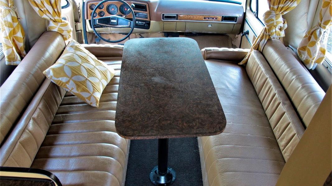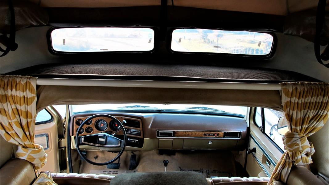 Конкретный экземпляр кемпера, который появился на аукционе Mecum Auction, оснащен 6,6-литровым двигателем V8 в сочетании с 4-ступенчатой автоматической коробкой передач Turbo Hydra-Matic и полным приводом.
