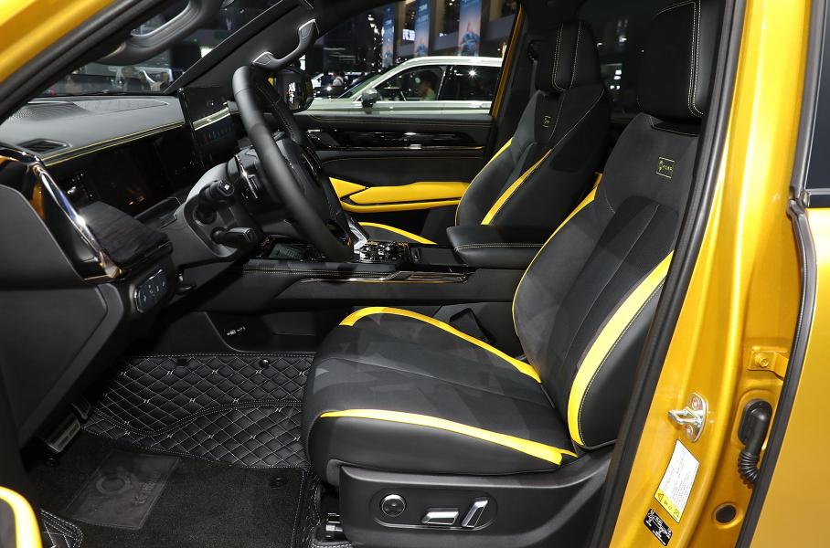 В салоне всё почти также, как в Tank 500 или в исходном Shanhai Poer двухлетней давности, разве что добавлена рукоятка перед передним пассажиром и яркие жёлтые вставки. Под капотом турбодизель 2.4, знакомый россиянам по новому Haval H9, тяга передаётся через 9-ступенчатый автомат и систему полного привода типа ToD с демультипликатором BorgWarner и тремя блокировками.