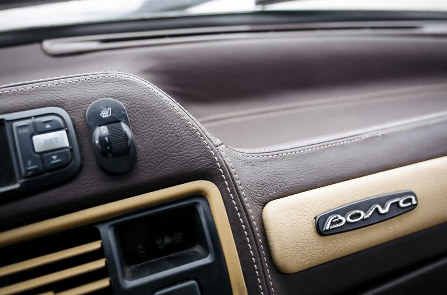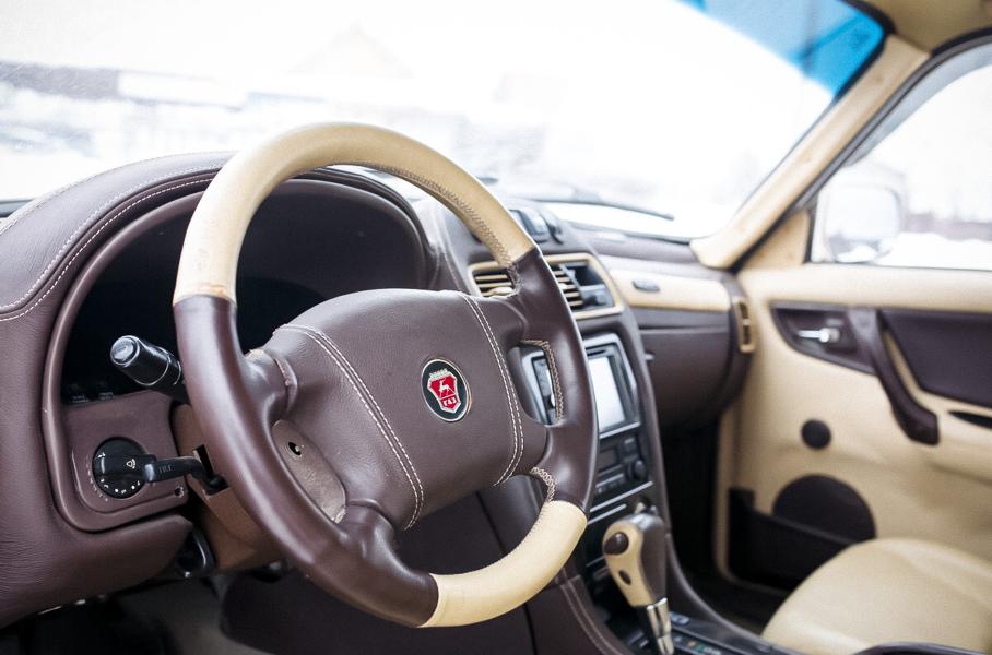 Салон выполнен из двухцветной кожи. В оснащение универсала входит обогрев всех сидений и рулевого колеса, система климат-контроля, цифровая приборная панель, а также камера заднего вида, автозапуск двигателя и электропривод передних кресел. От заводской версии в машине остались лишь дверные карты.