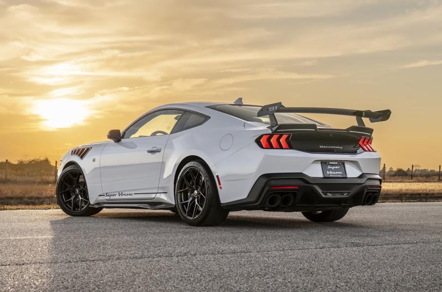 Фастбек обзавелся приводным нагнетателем, 20-дюймовыми колесами и новым аэродинамическим обвесомАтелье Hennessey Performance добавило Ford Mustang Dark Horse приводной нагнетатель и назвала сие творение Super Venom. Правда, «супервеномом» может быть и обычный Mustang GT, так как и там, и там под капотом стоит модернизированная «восьмерка» Coyote объемом пять литров. Техасцы меняют систему впуска, топливные форсунки, насосы и прошивку, чтобы на выходе получить 862 лошадиные силы и 881 Нм крутящего момента. Довольно серьезная прибавка на фоне стоковых 507 сил и 567 Нм.