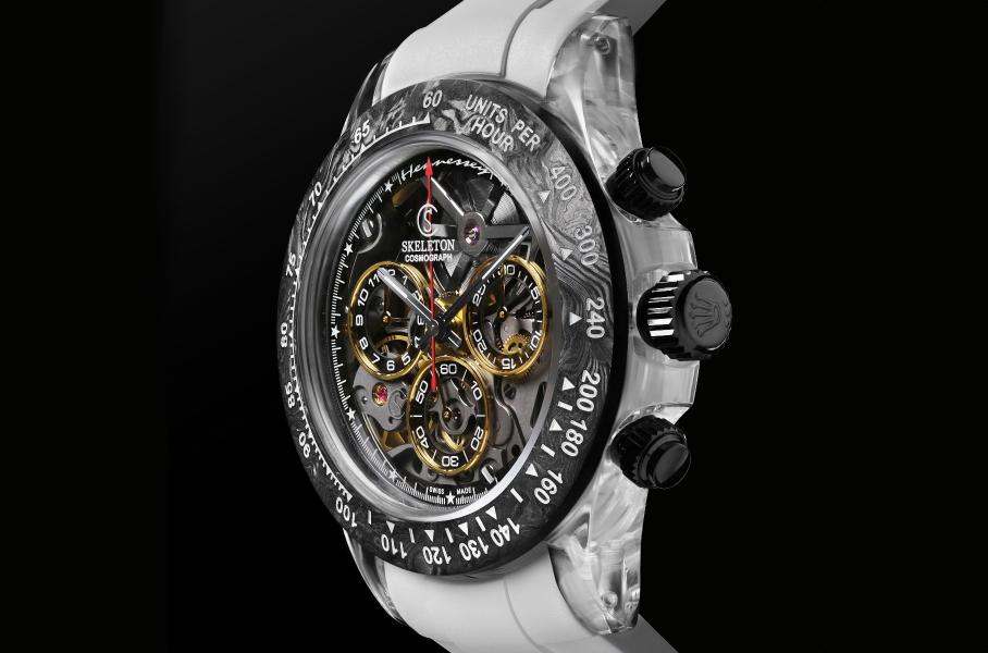 Часы стоят 200 000 долларовЛимитированный хронограф Hennessey Venom F5 Concept создан в партнерстве с парижским часовым ателье Skeleton Concept. Название «ателье» здесь неслучайно. Компания не занимается выпуском часов, а лишь их глубокой персонализацией, и в случае с хронографом Hennessey за основу взяты хорошо известные Rolex Cosmograph Daytona.