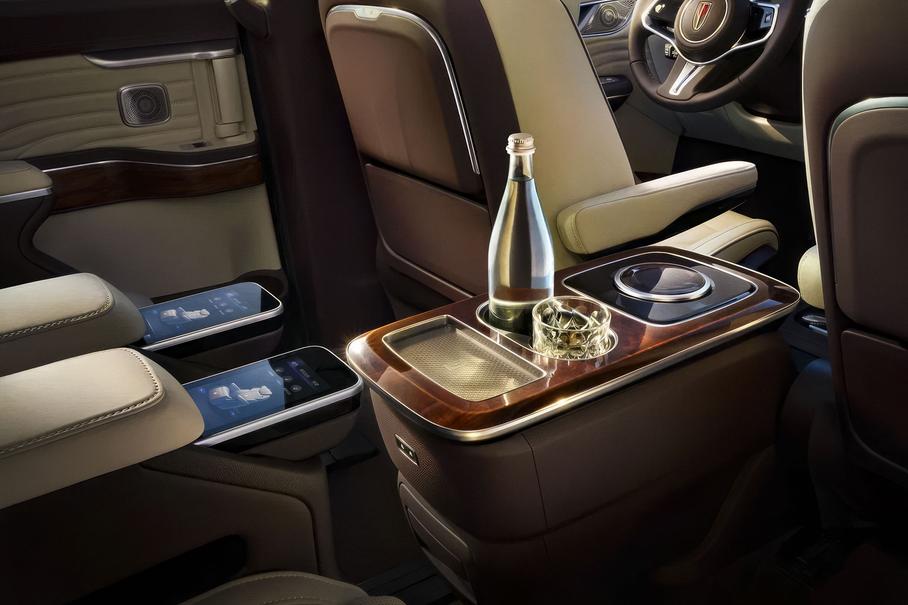 На втором ряду — самые комфортные кресла с подставками для ног и электрорегулировкой в 16 направлениях, системой пневмомассажа с пятью режимами и тремя уровнями интенсивности. В подлокотники встроена похожая на смартфон панель управления микроклиматом, опциями комфорта и мультимедийной системой.