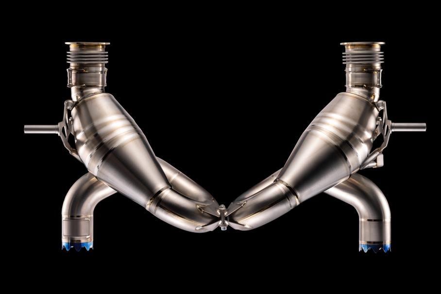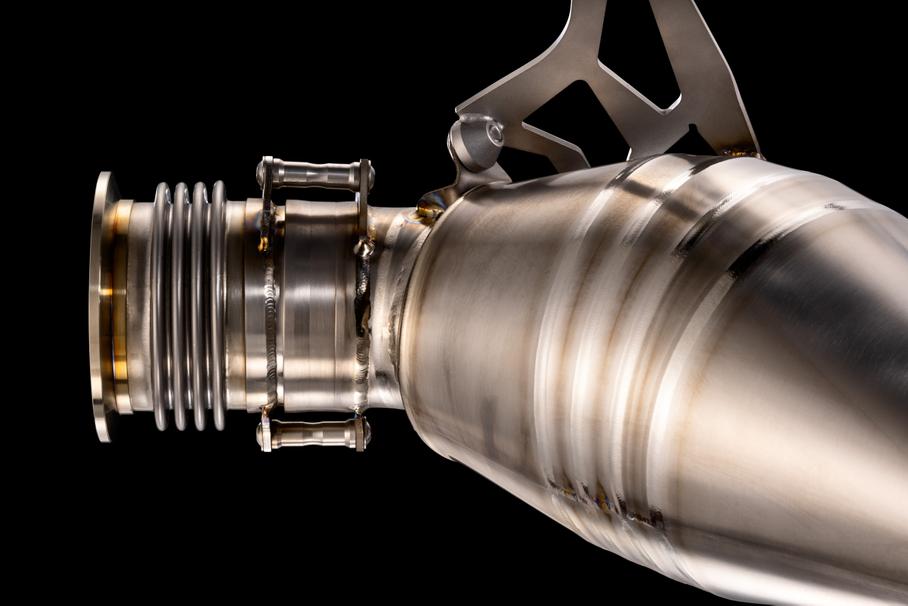 Выхлопную систему выпустят ограниченным тиражомМасса выхлопной системы составляет всего 6,45 килограммов за счёт использования в конструкции двух лёгких металлов: сама выхлопная система изготовлена из титана, а сильфоны — из инконеля. Сваривать воедино два этих металла сложно, но Бальбони нашёл выход за счёт особой конструкции выхлопа.