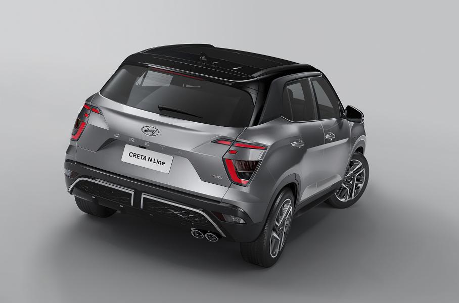 От обычной Creta версию N Line можно отличить по новому дизайну переднего бампера и корпусам противотуманных фар треугольной формы. У радиаторной решетки иной рисунок в стиле Tucson, над ней появилась вентиляционная прорезь, а хромированные элементы затемнены. Сзади появился диффузор и сдвоенные патрубки выхлопной системы. Довершают облик 17-дюймовые диски оригинального дизайна. На сиденьях вышиты эмблема N Line, она украшает рычаг коробки передач и рулевое колесо, а ярким акцентом стала красная строчка в обивке.