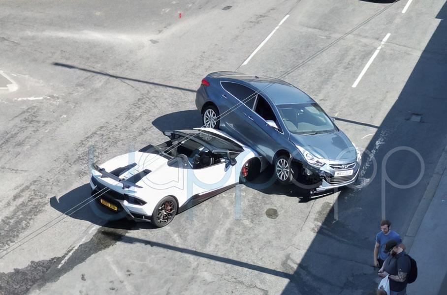 Водитель Huracan дал короткий сигнал о повороте налево, но затем, вероятно, передумал и продолжил двигаться по прямой. По всей видимости, женщина за рулем Hyundai (сообщается, что в машине она была с детьми) не успела среагировать на смену планов. Автомобиль выехал на перекресток, где встретился с итальянским родстером, залез на его капот и застыл в таком положении.