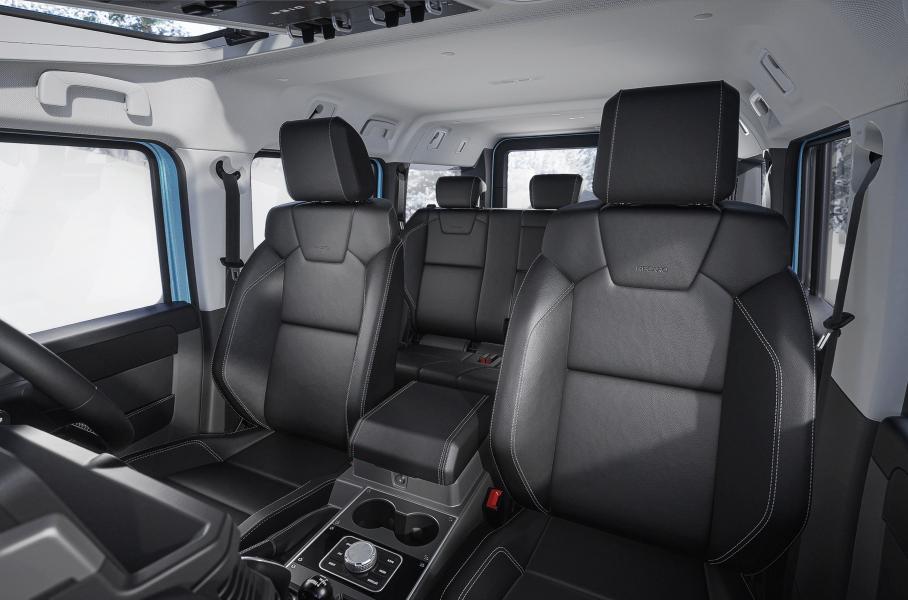 Объем багажника варьируется от 1152 до 2088 литров, причем в базовый двухместный фургон вмещается стандартная европалета. Груз можно фиксировать с помощью перегородок и крепежных колец, которых в Grenadier насчитывается от 10 до 12.