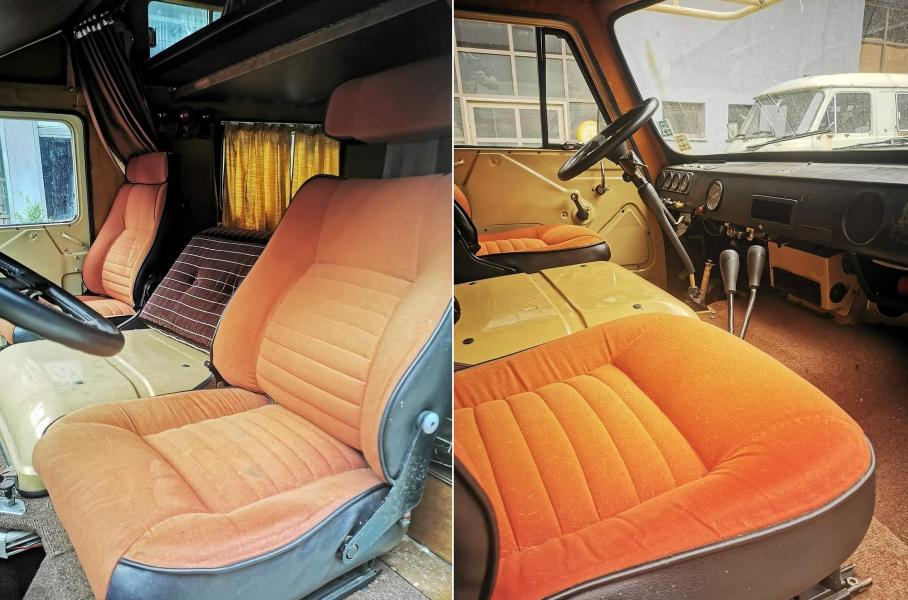 По прибытии в Италию «буханка» была переделана во внедорожный кемпер: фургончик дооснастили высокой крышей, раскладными диванами, шкафчиками, обеденным столиком. Внутри предусмотрена плитка с мойкой, холодильник, душ и туалет. Салон рассчитан на пять спальных мест. По фотографиям видно, что кухонный блок пострадал от времени и нуждается в ремонте.