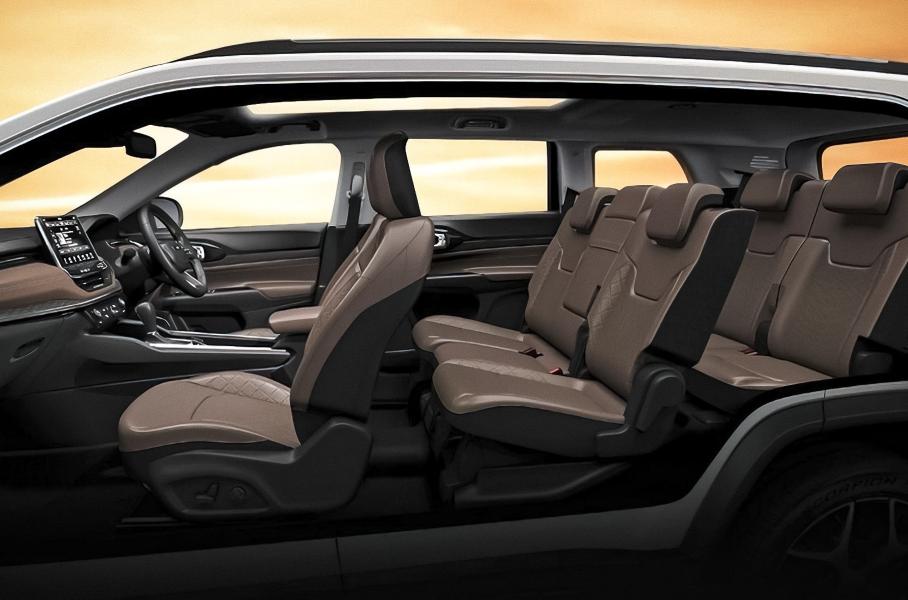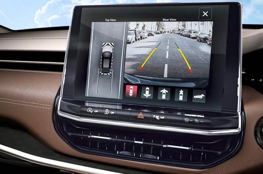 Салон в точности повторяет Commander (за исключением расположения руля): те же экран мультимедийной системы диагональю 10,1 дюйма, виртуальная панель приборов на 10,25 дюйма, беспроводная зарядка для смартфона, шесть подушек безопасности, двухзонный климат-контроль, камеры кругового обзора и система выбора режимов движения.