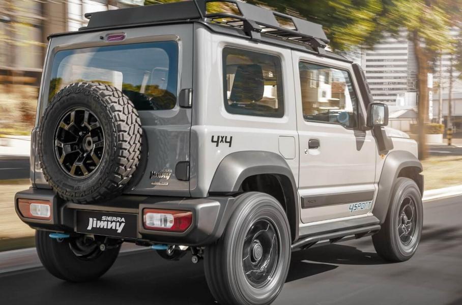 Модификация 4Sport ориентирована на любителей активного отдыхаСнаружи спецверсию Suzuki Jimny проще всего узнать по голубым наклейкам на дверях, ярким буксирным проушинам, шинам Pirelli M/T, чёрным трубчатым усилителям под порогами, выведенному шноркелю и багажнику на крыше. Утверждается, что глубина преодолеваемого брода выросла до 600 миллиметров, а вот углы въезда/съезда из-за новых стальных элементов снизились до 31 и 40 градусов соответственно.