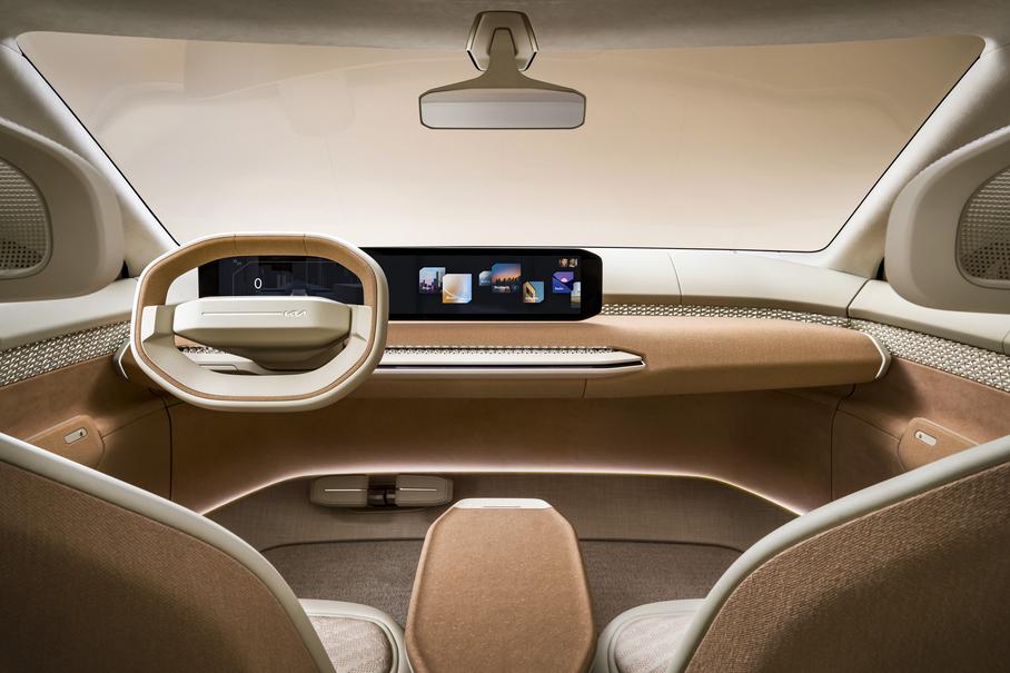 В отделке использованы только экологичные материалы спокойных тонов. Сиденья можно переместить, сделав пространство удобнее для общения, отдыха или перевозки вещей — в последнем случае можно сложить задний диван, и в багажник влезет электросамокат или велосипед.