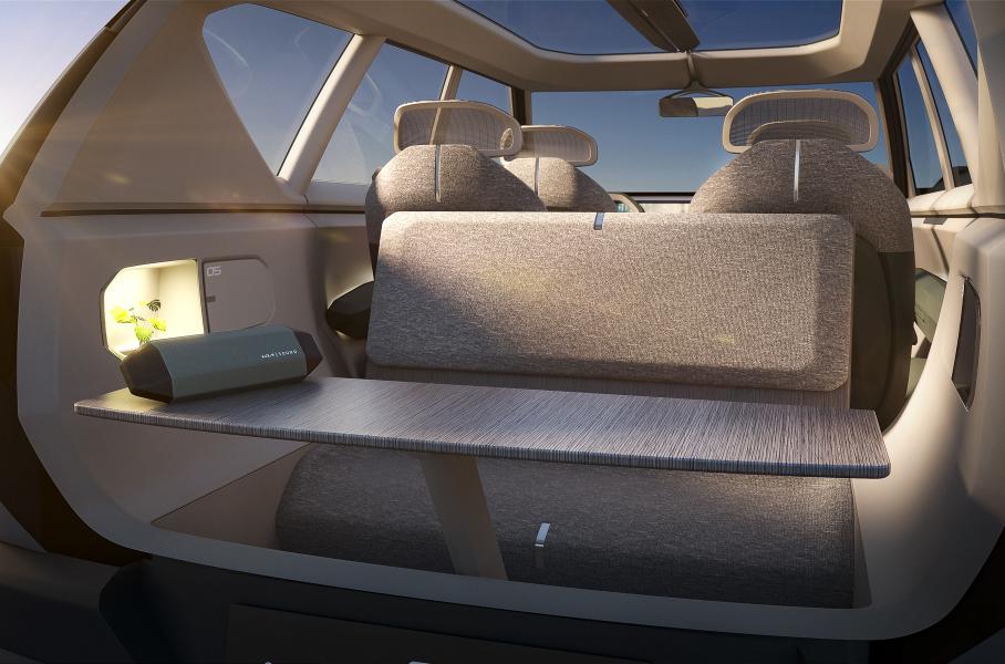 В салоне — четыре раздельных кресла, небольшой «граненый» руль и прямоугольная сенсорная панель, на которую выведено управление всеми функциями автомобиля. Из опций пока упоминается лишь круиз-контроль.