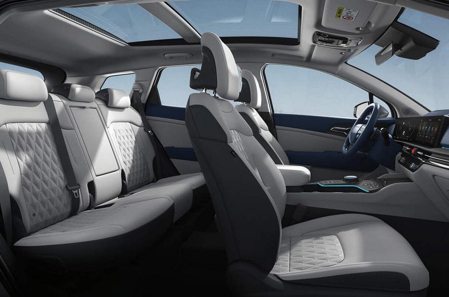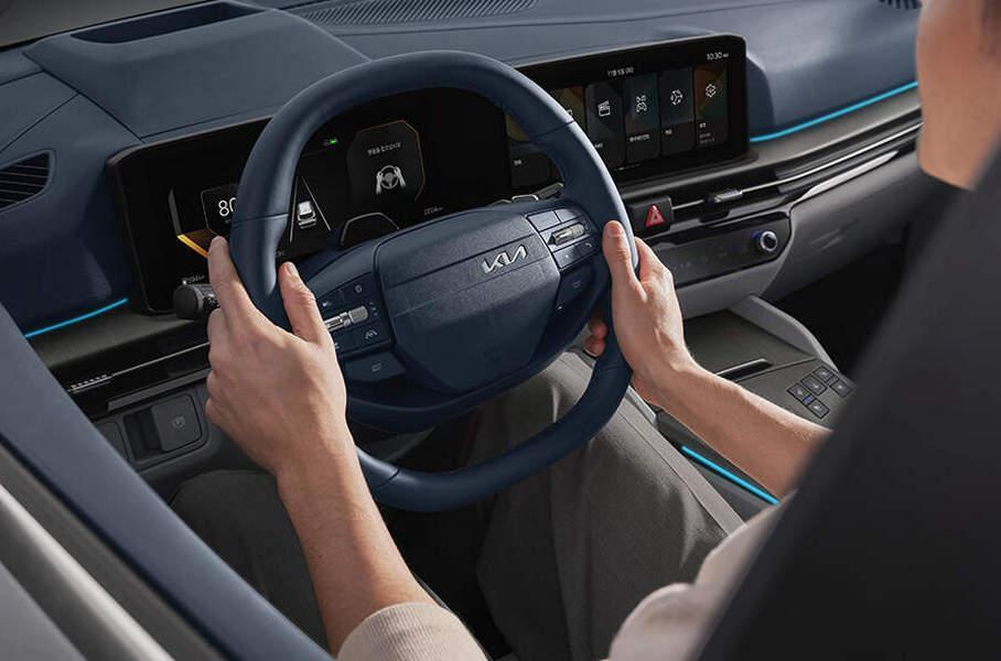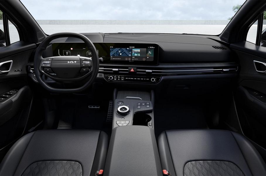 Интерьер также стал строже. Архитектура передней панели со сдвоенным дисплеем без козырька прежняя, но исчезли замысловатые «крылышки» воздуховодов по краям экрана — теперь все они нарисованы как по линейке. Симпатичный трёхспицевый руль заменили двухспицевой «баранкой», подрезанной сверху и снизу. Её странная форма напоминает об экспериментах дизайнеров премиум-кроссовера Genesis GV80 — от которых, к слову, отказались в ходе рестайлинга.