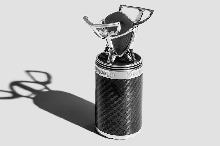 Дорогому гиперкару — роскошный аксессуарФорма футляра, помимо отсылки к драгоценным яйцам, также является трёхмерным изображением щита Koenigsegg, выполненного в руническом скандинавском стиле. Держатель изготовлен из полированного алюминия и украшен символикой Koenigsegg, включая VIN соответствующего автомобиля, выгравированным на его ручках и ножках.