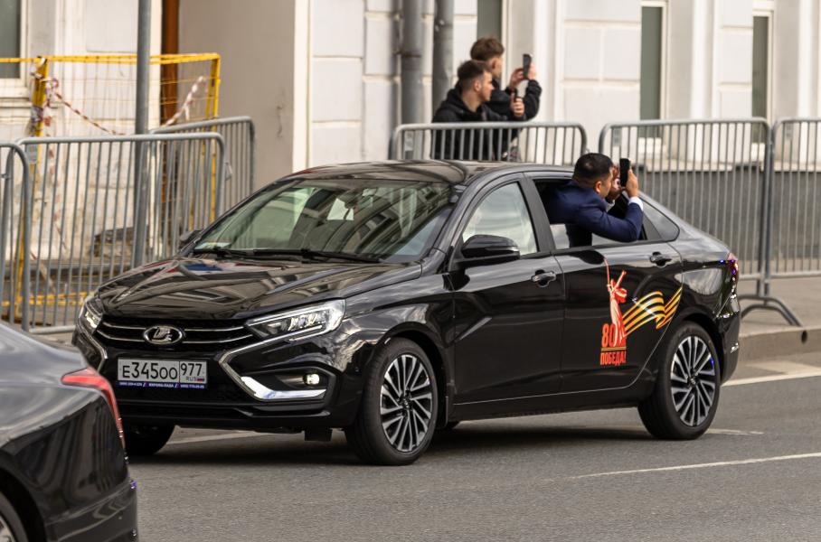 Российский стретч-седан встречает президентов и премьер-министровРаньше в кортежах глав государств аналогичную роль исполняли предыдущие бизнес-седаны УДП: Toyota Camry, BMW 5-Series F10, Hyundai i40 и Ford Mondeo IV. Однако в канун 9 мая практически у всех гостей в колонне была Lada Aura: новинка АвтоВАЗа встречала и делегацию Китая, и делегацию Монголии, и делегацию Бразилии. В честь праздника автомобиль украсили специальной наклейкой на задней двери.