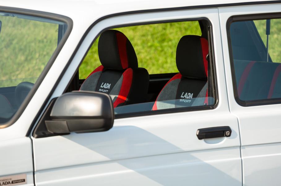 Светодиодные противотуманки, шноркель, расширители колёсных арок и горб воздухозаборника на капоте взяты у раллийной «Нивы». По салону прототип напоминает Niva Sport с «Гонки чемпионов»: поменялись рычаги коробки передач и раздатки, добавились кресла с развитой боковой поддержкой. Сами сиденья впрочем другие: отличаются и профиль, и расцветка.