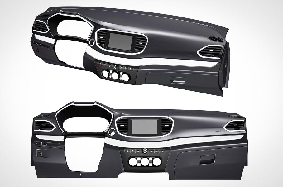 Передняя панель запатентована в трех вариантах дизайнаСамую доступную Vesta NG предложат с нишами в том месте, где обычно расположен дисплей мультимедийной системы, и с аналоговой панелью приборов, дизайн которой рассекретили за несколько недель до этого. В среднем уровне исполнения предусмотрен экран мультимедийной системы, как в дореформенной Весте, по обе стороны от которого расположены дефлекторы воздуховодов.