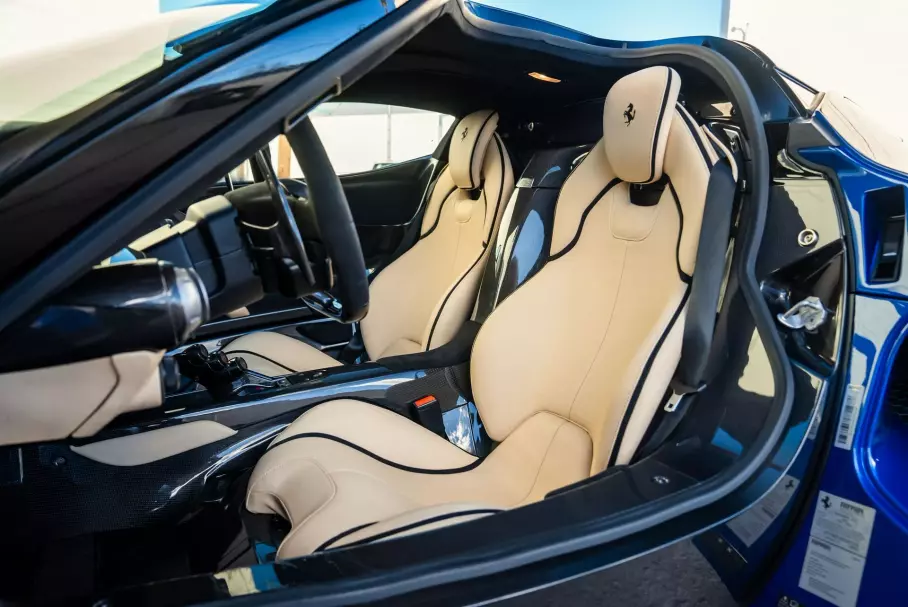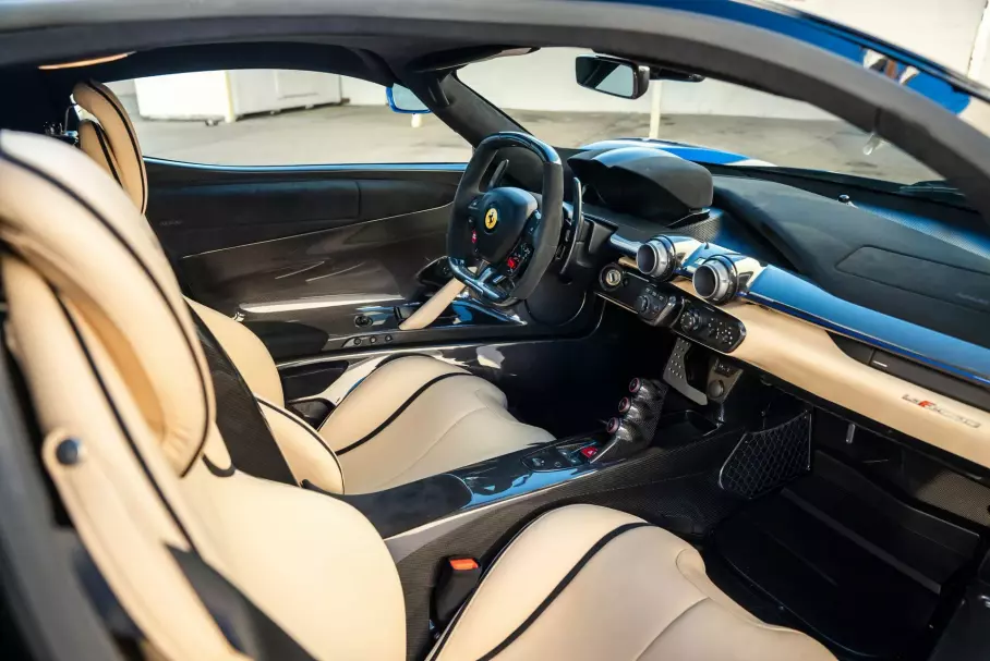 Особенностью гиперкара является его декорКузов купе окрашен в насыщенный синий цвет Blu Elettrico, который дополнен тёмно-серыми магниевыми колёсами, контрастной чёрной крышей и тормозными суппортами такого же оттенка. Салон отделан светлой кожей цвета Crema, сочетающейся с углепластиковым декором. Заявлено, что подобных автомобилей Ferrari больше не делала.