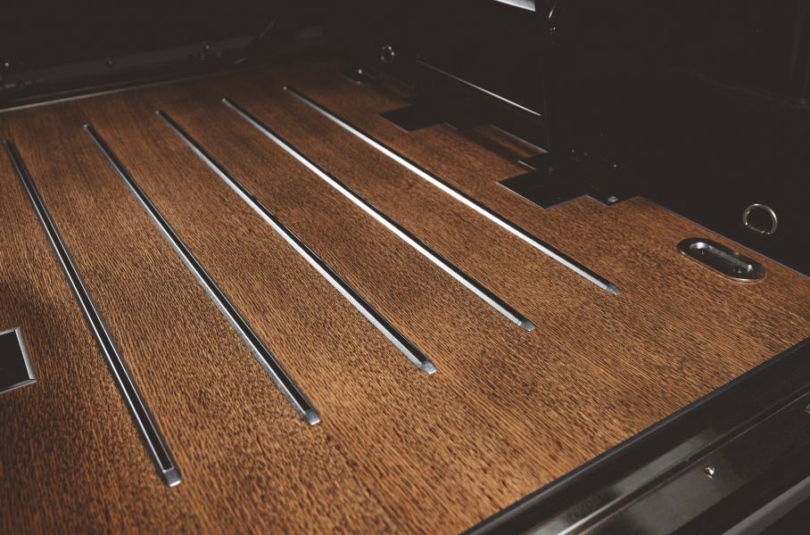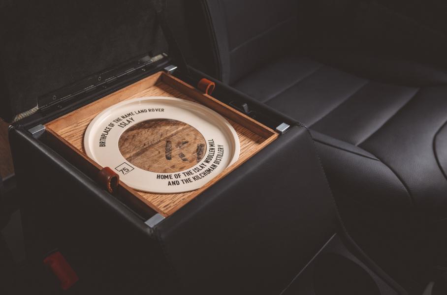 Но всё же в большей степени связь с островом Айлей проявится во внутреннем убранстве. Так, сиденья и двери «Дефендера» будут обиты чёрной кожей Windsor в сочетании с твидом от фабрики Islay Woollen Mill, цвета которого соответствуют базовым оттенкам местного ландшафта. Из твида будет сшит также небольшой кармашек для мелочовки в центральном подлокотнике, а площадку в его верхней части изготовят из американского ореха и дуба от бочек из-под виски, взятого у винокурни Kilchoman. Вискарню в 2005 году основала внучка Спенсера Уилкса.