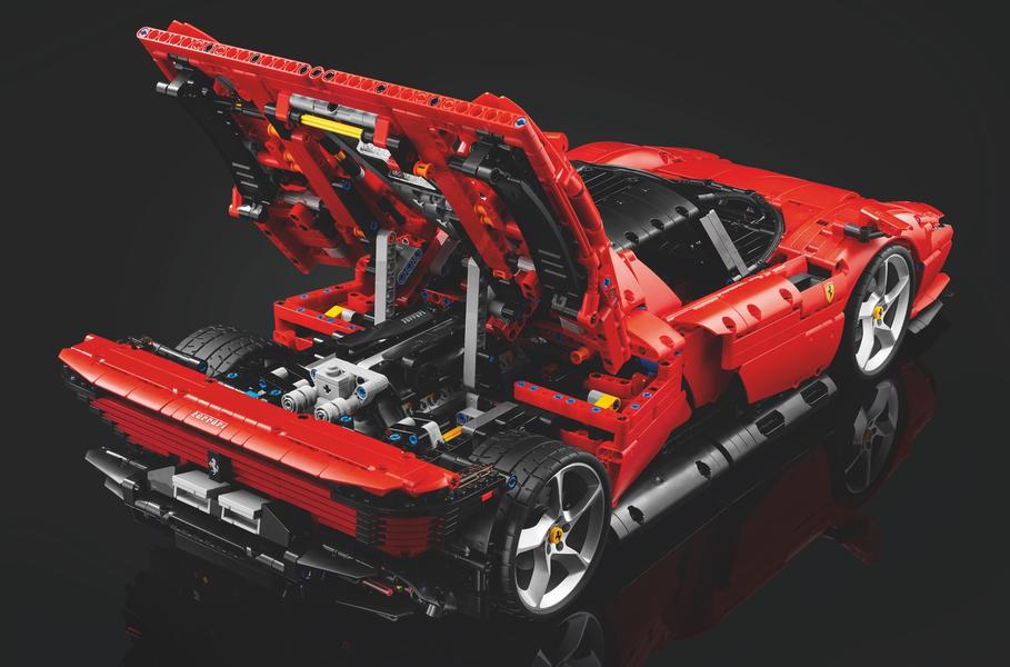 Набор с работающей коробкой передач и двигателем состоит из 3778 деталейСерия Lego Technic пополнилась новым набором. Из 3778 деталей предложено собрать таргу Ferrari Daytona SP3, у которой будут функционировать «секвенталка» с подрулевыми лепестками и открываться двери «крылья бабочки». Также для модели заявлены подвижные поршни двенадцатицилиндрового двигателя, лакированные серебристые колесные диски и детально проработанный салон.