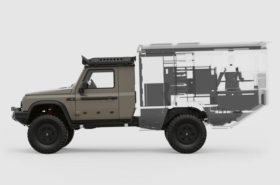 Теперь же Lennartz Technik анонсировала грузовое шасси с однорядной кабиной на базе «Гренадёра». За основу берётся серийный пикап Ineos Grenadier Quartermaster, который отличается от аналогичного внедорожника удлинённым на 305 мм шасси.