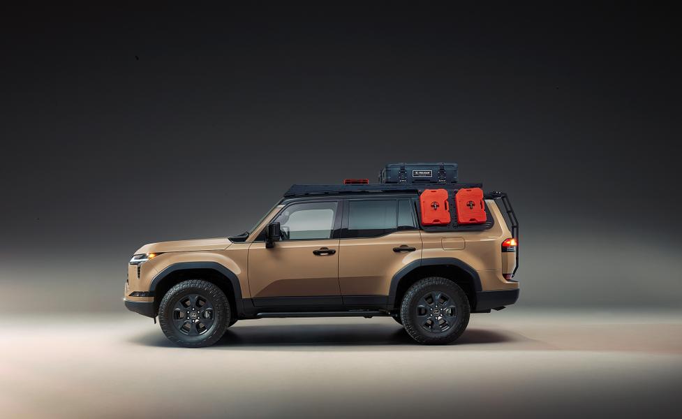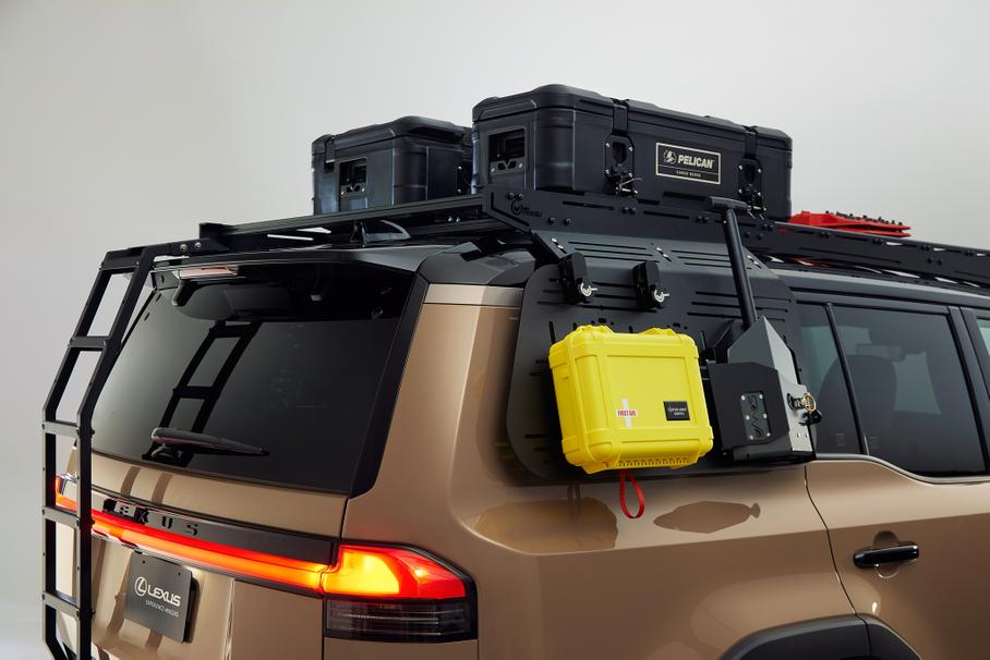 Наконец, Lexus GX 550 Overtrail+ AAP отличается двухцветной окраской Lexus Earth и Black, чёрными 18-дюймовыми колёсами с 33-дюймовыми шинами Toyo Open Country A/T. На крыше расположен багажник Prinsu с лестницей на крышу, ящиками Pelican BX90R Cargo Case и BX55S Cargo Case, панелями Prinsu для установки аксессуаров на задние стекла. В оснащение вошли контейнеры rotoPax, лопата DMOS и сэндтраки ARB TRED Pro. С технической точки зрения все три автомобиля остались полностью стандартными.