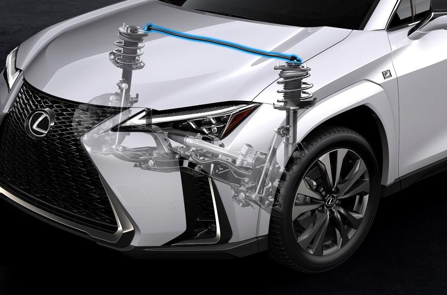 Версия UX F Sport отныне штатно комплектуется электронноуправляемыми амортизаторами AVS и задним демпфером Yamaha, задача которого — гасить колебания кузова и мелкие вибрации.