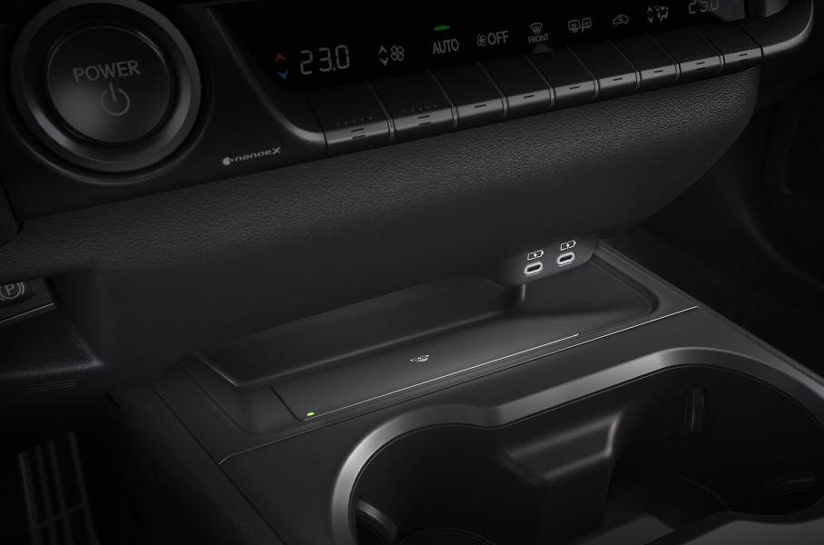 Между передними стойками появилась новая распорка, в салоне — опора для левой ноги и накладки на пороги из алюминия. Для всех UX изменены форма и расположение переключателей на центральной консоли, плюс добавлены два зарядных порта USB-C.