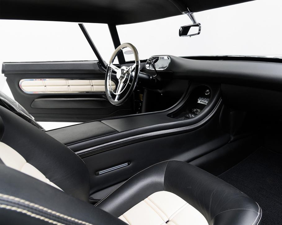 Салон получил руль от Colorado Custom, мультимедийную систему Kicker и цифровые приборы Dakota Digital, а также кресла от Lexus. Интерьер отделан чёрной кожей с белыми вставками. Под капотом рестомода скрыт 850-сильный двигатель V8 от Ford, доработанный Jon Kaase Racing, который сочетается с автоматической коробкой передач Chevrolet.