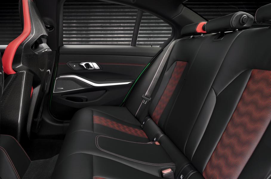Разница в весе с исходной Competition невелика — седан в хардкорном CS-варианте стал легче всего на 20 килограммов. Для сравнения, M4 CSL «скинул» целый центнер. M3 CS облегчили за счет углепластиковых деталей — капота, сплиттера, передних воздухозаборников, корпусов зеркал, диффузора и спойлера. Из него изготовлены также центральная консоль, подрулевые переключатели, элементы декора и корпуса ковшеобразных сидений M Carbon с кожаной обивкой. Более чем на четыре килограмма снизил вес титановый глушитель.