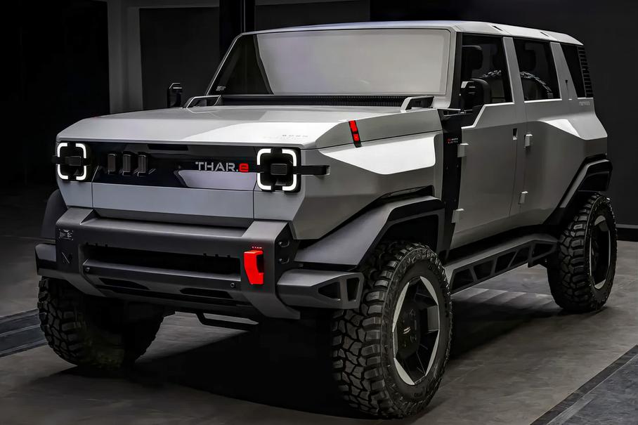 Индийская марка, прежде выпускавшая лицензионные копии Jeep, представила концепт с оригинальным дизайномВ основе Thar.e лежит платформа-скейтборд INGLO (India Global), созданная для электромобилей. Для внедорожников, построенных на этой архитектуре, заявлен дорожный просвет от 250 до 300 миллиметров и двухмоторная установка.