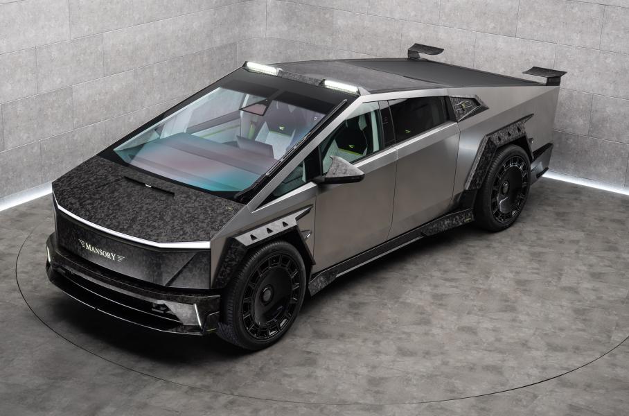 Пикап получил новый обвес и колесаАтелье Mansory разработало комплексную программу тюнинга для Tesla Cybertruck. Называется она Elongation (растяжение), хотя ни растягивать, ни удлинять электрокар, конечно же, не будут. В сущности всё сведется к установке обвеса из прессованного углеволокна, причем детали можно оставить как есть либо окрасить в любой цвет. Пакет включает оба бампера, боковые юбки, экстравагантные накладки на колесные арки и два отдельных спойлера на корме в стиле Ferrari FXX K.