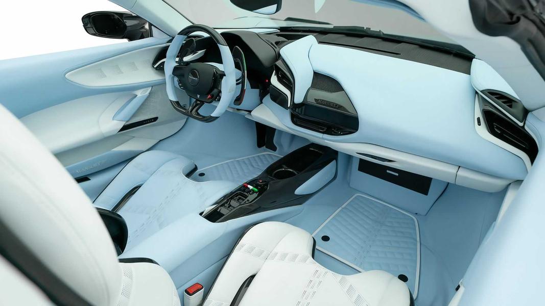 Один установлен между двигателем и коробкой передач, два других — на передней оси. На Mansory F9XX ДВС форсирован до 980 сил и 980 Нм момента, так что комбинированная мощность составляет 1100 лошадиных сил. Всего будет сделано три экземпляра Mansory F9XX Tempesta Celeste, каждый из которых в рамках программы One of One получит особое оформление кузова и салона.