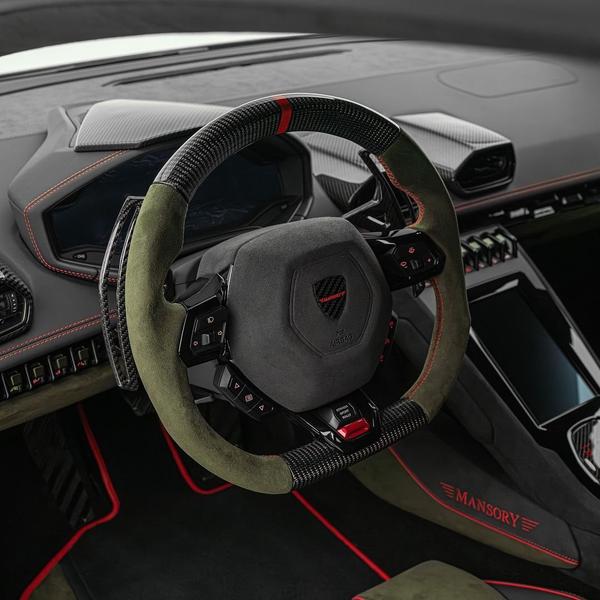 Huracan Sterrato получил комплексный пакет доработокОсобенностями проекта Mansory стали эпатажный аэродинамический обвес из кованого углеволокна и новые колёсные диски FO.6 необычного дизайна. В салоне изменения свелись к появлению декоративных элементов из карбона, новой обивке из алькантары и фирменным ремням безопасности.