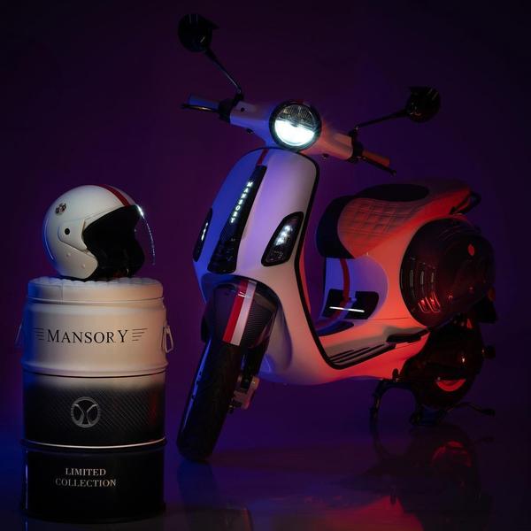 Эмблемы Piaggio и Vespa заменены логотипами Mansory. Цветовая гамма вдохновлена цветами княжества Монако — скутер украшает красно-белая графика. Техника не тронута — скутер сохранил штатный 5-сильный электромотор, который обеспечивает максимальную скорость 70 километров в час. Благодаря режимам движения Eco и Power мопед может проехать до 100 километров на одной зарядке.