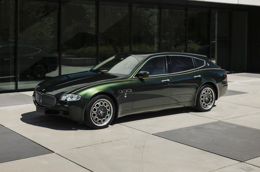 За переработанную вручную версию Quattroporte покупатель выложил 161 тысячу евроАтелье выпустило четыре Bellagio, что делает универсал одним из самых эксклюзивных Maserati. Экстерьер выполнен в темно-зеленом металлике Forest Green с золотыми акцентами и 19-дюймовыми колесными дисками Borrani Bimetal, а кастомизированный салон обшит бежевой кожей.