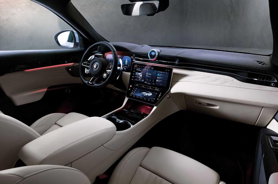 В салоне имеются мультимедиа на ОС Android Automotive с двумя экранами диагональю 10,25 дюйма, аудиосистема Sonus faber с 14 или 21 динамиком, на передней панели установлены смарт-часы.