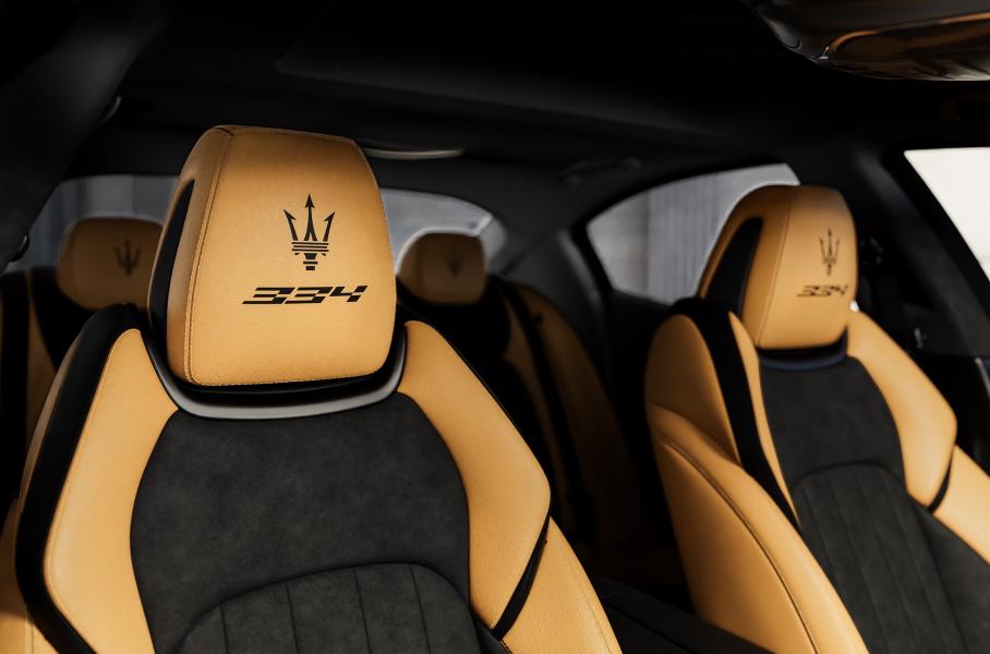 По словам Maserati, они поработали над аэродинамикой, снизили вес и использовали шины с новым составом резиновой смеси. Седан окрашен в цвет Scià di Persia (шах Персии), для надписей «334» на передних крыльях использован оттенок Rubino. Салон обит кожей Pale Terracotta, напоминающей о внутренних убранствах классических моделей марки. Она соседствует с черной алькантарой и декоративными вставками из углеволокна.