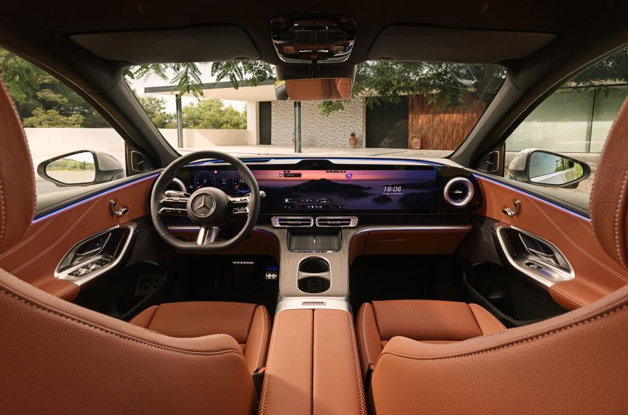 В салоне — новый бесшовный экран Hyperscreen фирменной медиасистемы MBUX диагональю 39,1 дюйма. Также есть фоновая подсветка, а на центральном тоннеле уместились два отсека для беспроводной зарядки и два подстаканника. Голосовой помощник работает на базе ИИ и запоминает предыдущие диалоги.