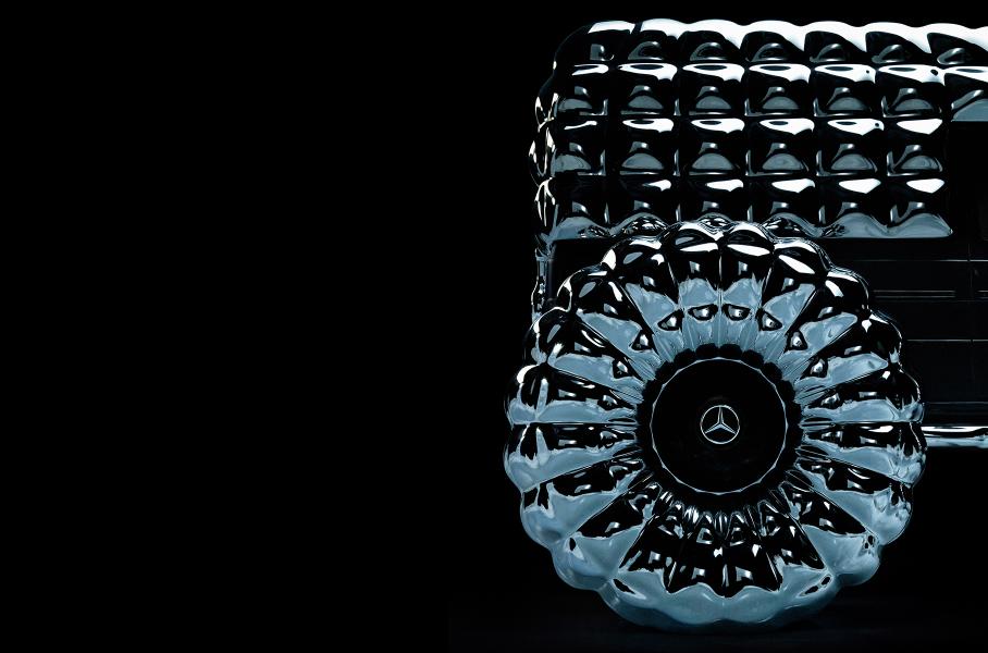 Шоу-кар с мягкими колесами и крышей дебютирует на Неделе моды в ЛондонеХотя Mercedes-Benz не называет модель прямо, в «уникальном произведении искусства» без труда узнается G-Class: на одном из тизеров показаны его круглая оптика и решетка радиатора. А вот по бокам и сверху видно нечто странное: внедорожнику достались огромные колеса и крыша с молнией по центру, дизайном напоминающие культовых пуховиков Moncler.