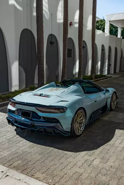 Автомобиль называют первым доработанным Cielo в миреАмериканские тюнеры взяли за основу и без того редкий Maserati MC2 Cielo — один из 65 выпущенных родстеров в исполнении PrimaSerie Edition, который дополнили ярким во всех смыслах аэродинамическим обвесом. Все детали выполнены из ярко-синего карбона.