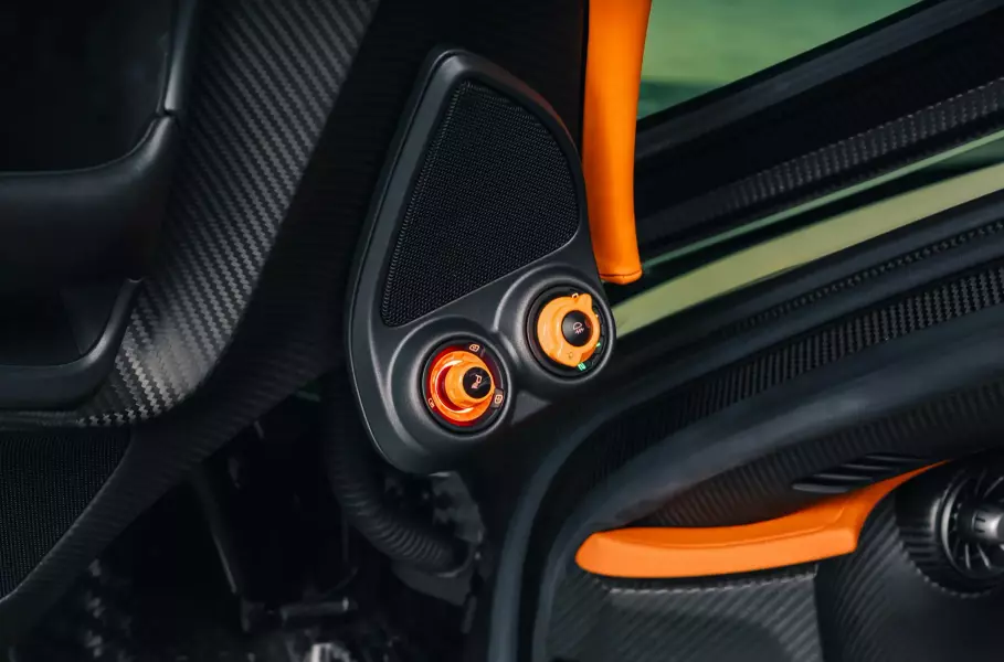Оранжевый цвет, особенно применительно к McLaren, обычно ассоциируется с автоспортом. Здесь его используют для эмблем, тормозных суппортов, ступичных колпачков, верхних частей гидравлического привода заднего спойлера и логотипов. В салоне цветом McLaren Orange «окрашены» сиденья, обод руля, верхняя часть передней панели и переключатели на центральной консоли и дверях.