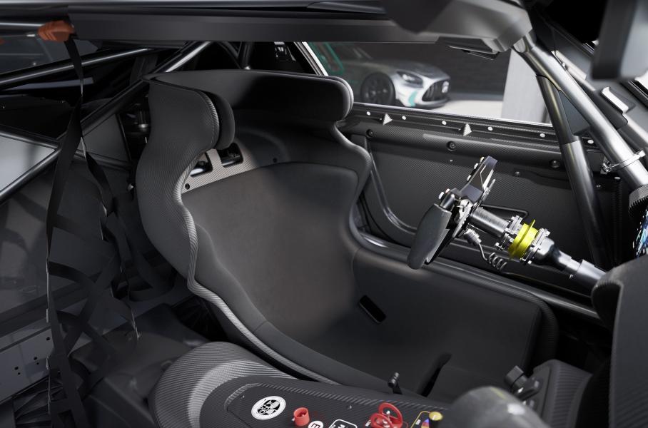 Трекш-контроль и АБС — настраиваемые. Стальной каркас прикручен прямо к алюминиевой пространственной раме. Карбоновые кресла дополняют шеститочечные ремни безопасности и эргономичные вкладышы с пенным наполнителем. Также имеются защитные сетки, аварийный люк в крыше, безопасный топливный бак на 120 литров из углеродного волокна и мощная система пожаротушения, адаптированная для автоспорта.