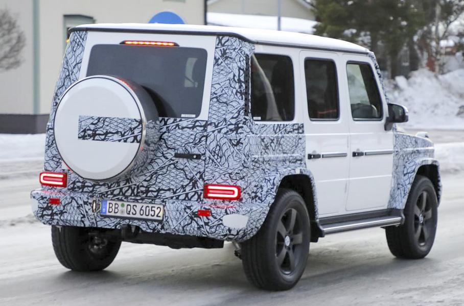 Еще в 2020 году сообщалось, что с обновлением у G-Class появится заводская версия 4×4² для бездорожья. Такой внедорожник уже попадал в объективы шпионских камер: он получит дополнительные внедорожные атрибуты, которых не было у предшественника — запасное колесо на пятой двери, силовой багажник на крыше и противоподкатный брус.
