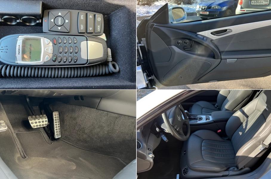 Сборка традиционная для SL 55 AMG начала 2000-х — кузов окрашен в серебристый металлик, салон отделан чёрной кожей. Среди необычных для сегодняшнего дня опций — телефон Nokia с нетронутой плёнкой. Есть мультиконтурные кресла с подогревом и вентиляцией, а салон рассчитан на двоих.