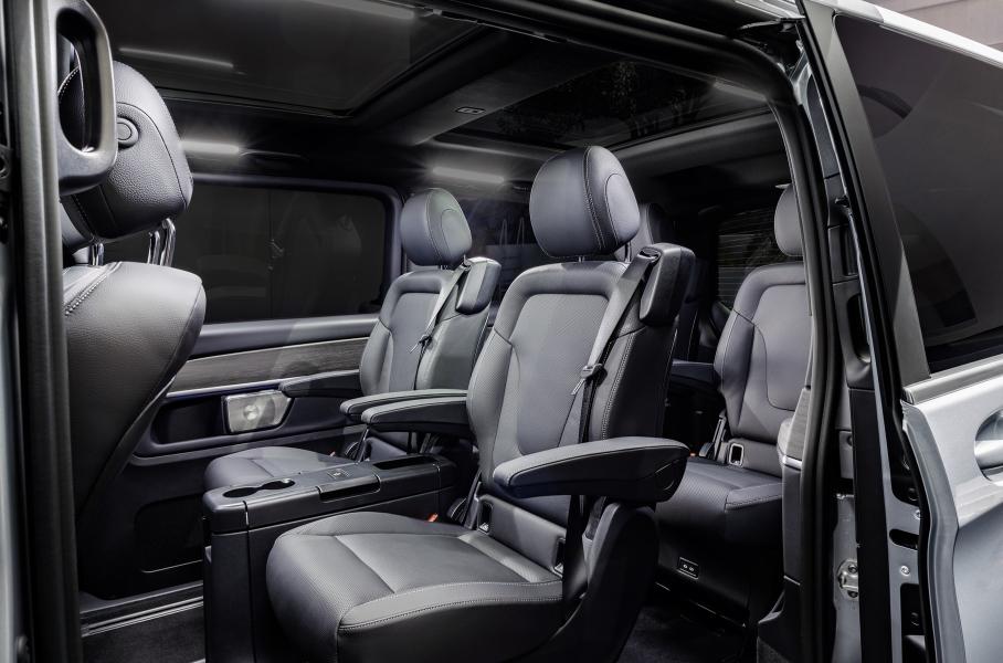 Список стандартного оснащения вэнов расширен, а функциональное оборудование, которое часто заказывают вместе, для удобства объединено в пакеты. Базовый V-Class имеет руль с кожаной оплеткой, кондиционер для задних пассажиров, комфортные кресла спереди и поддерживает интеграцию со смартфонами. У топового V-Class Exclusive — спортивная подвеска, электрический привод дверей, а руль обтянут не просто кожей, а дорогой наппой.