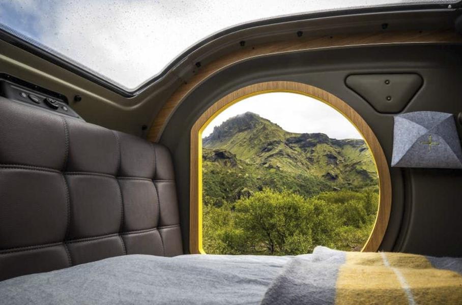 Кроме этого, внутри уместились места для хранения и даже зона для приготовления пищиПохожий на стиральную машину кемпер оснастили иллюминаторами по бокам, служащими также в качестве дверей. а добавляет света панорамный люк на крыше. Стандартное оснащение включает в себя кровать длиной 2000 миллиметров и шириной 1400 миллиметров, а за доплату можно добавить еще одну кроватку 1400х500 в качестве второго яруса. Для гаджетов предусмотрели четыре USB-входа, для мелких предметов – карманы на каждой стене.