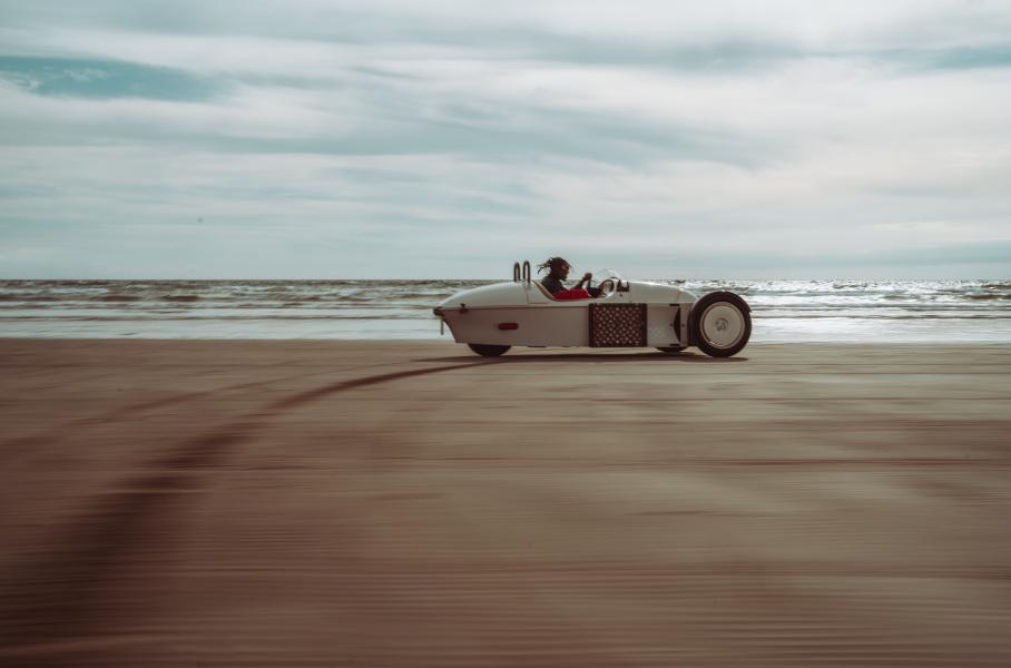 Бежевым сделан и каркас съемной крыши. Она крепится к кузову в нескольких местах и изготовлена из той же технической ткани, что и обивка сидений. В ближайшие 12 месяцев OB x Morgan Super 3 можно будет увидеть на самых экзотических пляжных локациях Европы, ну а первую поездку на автомобиле совершил американский визуальный художник и тревел-фотограф Карл Шакур.