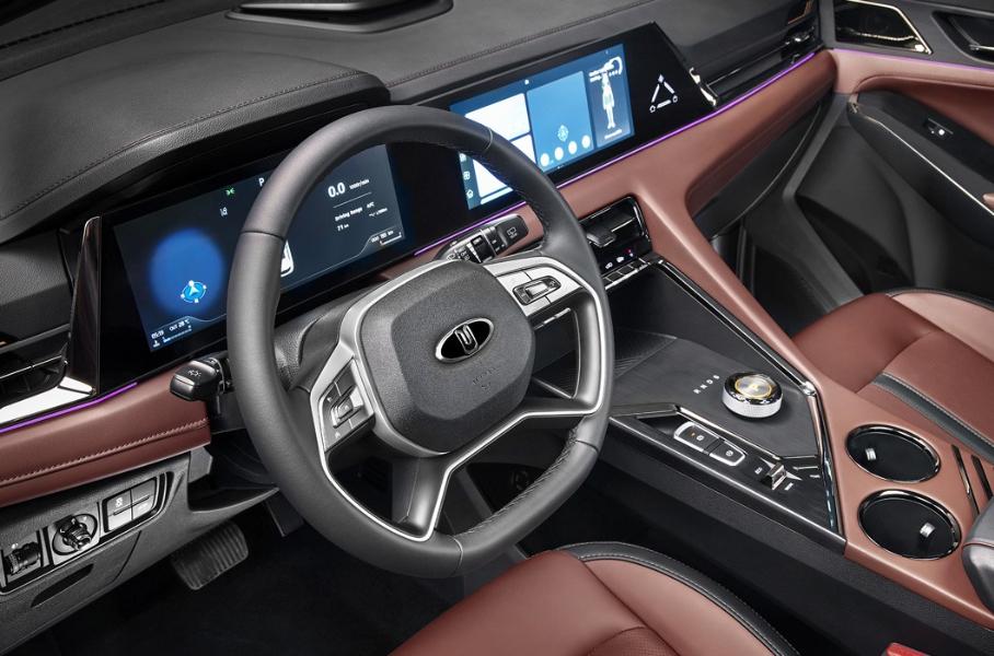 Внешне «восьмой» отличается от исходного Sehol X8 Plus только шильдиками, то же самое можно сказать и про салон. На центральной панели установлены два экрана, цифровая «приборка» диагональю 12,3 дюйма и тачскрин мультимедийной системы, которая поддерживает Apple CarPlay и Android Auto. Из оснащения пока заявлены камеры кругового обзора и беспроводная зарядка, но список опций может измениться ближе к запуску производства.