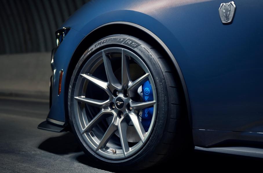 Двигатель Coyote V8 форсирован относительно обычной версии. Инженеры Ford Performance установили шатуны от компрессорного 770-сильного V8 Predator и иные дроссельные заслонки. Опция — усиленная 6-скоростная «механика» фирмы Tremec, тогда как обычные «Мустанги» оснащаются ручной коробкой передач Getrag. А вот «автомат» у всех версий принципиально одинаковый, с десятью скоростями.