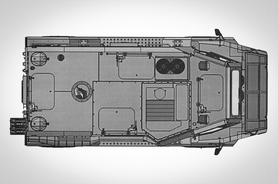 Главной особенностью запатентованного транспорта является оригинальный несущий бронекорпус, благодаря которому амфибия сможет выдержать обстрел бронебойно-зажигательными пулями калибра 7,62, а также подрыв противотанковой мины фугасного действия под днищем.